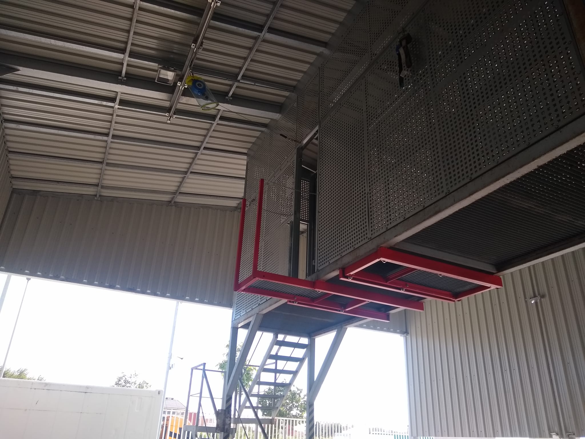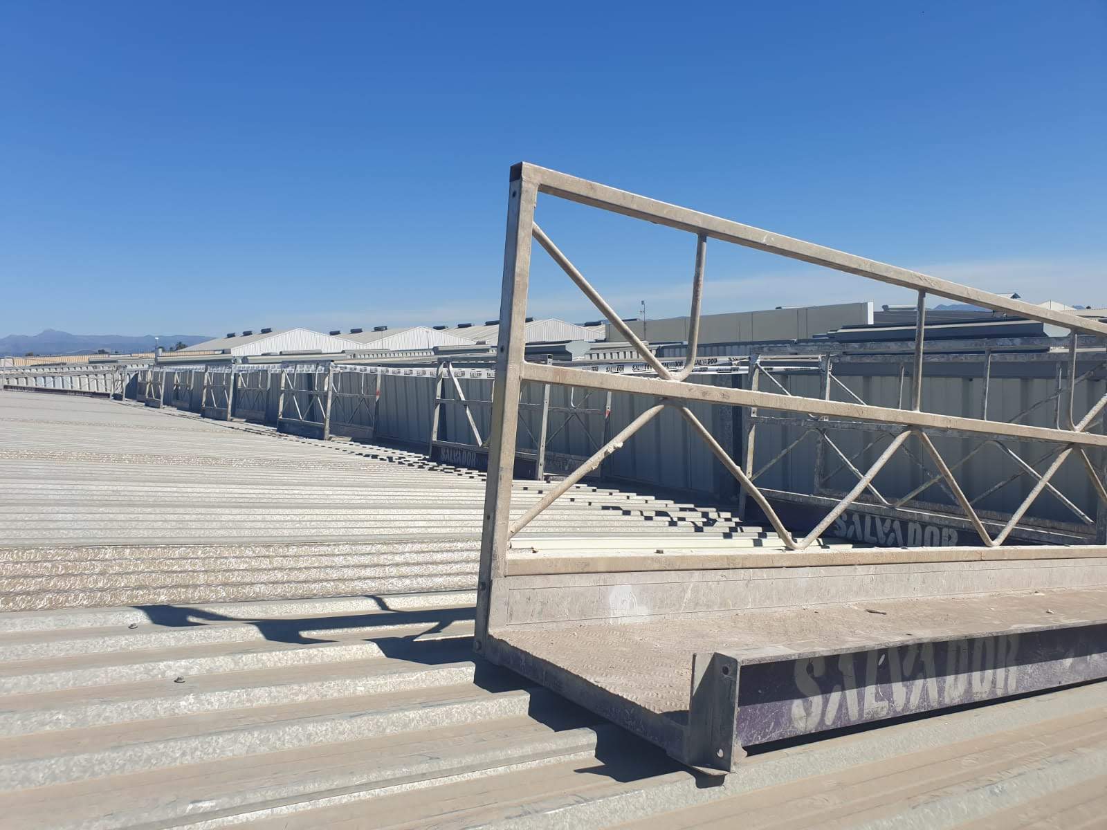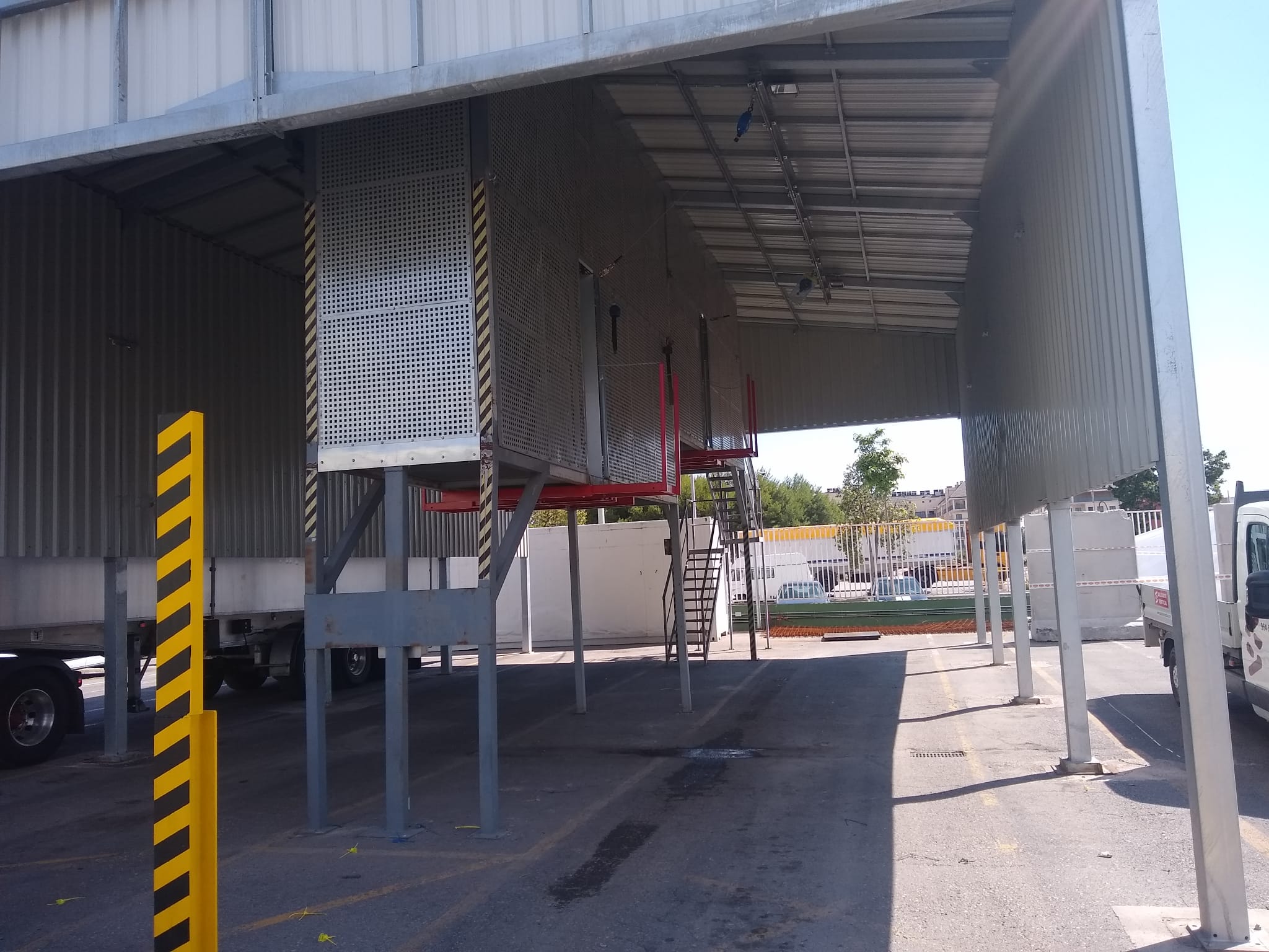 Cuando nos han solicitado la colocación de unas líneas de vida de raíl en una zona de carga de camiones de una importante empresa del sector de la alimentación, hemos utilizado todo nuestro ingenio para fabricar e instalar unas pasarelas escamoteables, telescópicas y regulables que crean un puente continuo entre la zona de acceso y la parte superior de los camiones. Veamos unas imágenes del resultado final